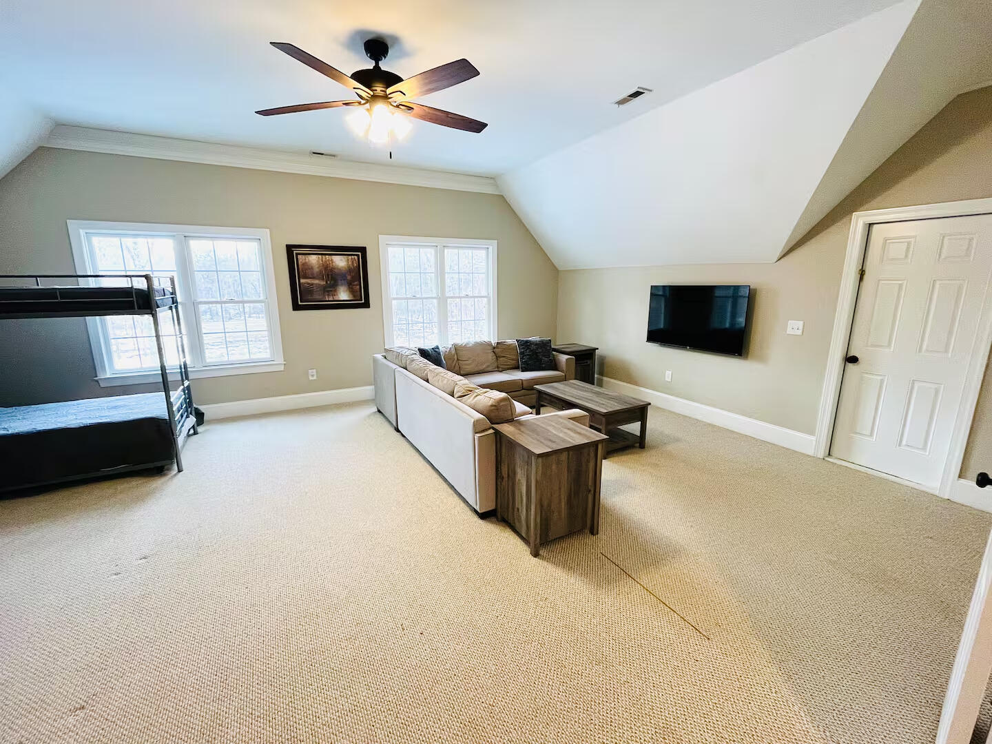 • Bunk Room: Perfect for kids or extra guests, featuring two twin bunk beds with trundle beds on each, accompanied by a TV and a play area.